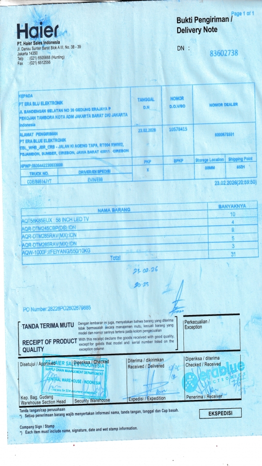 PT ERA BLUE ELEKTRONIK EBL_WHB_JBR_CRB - JALAN KI AGENG TAPA, RT004 RW002, PEJAMBON, SUMBER, CIREBON, JAWA BARAT 45611 CIREBON 45611 ID |