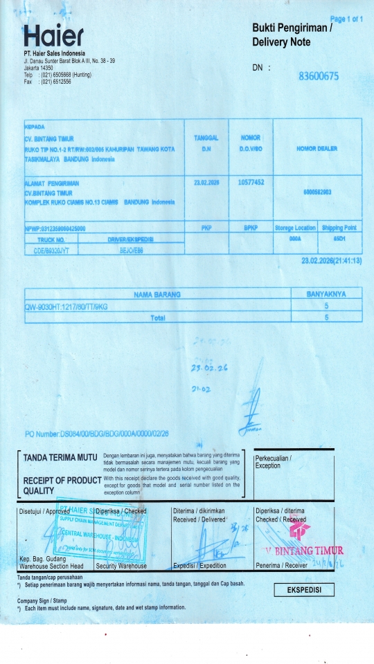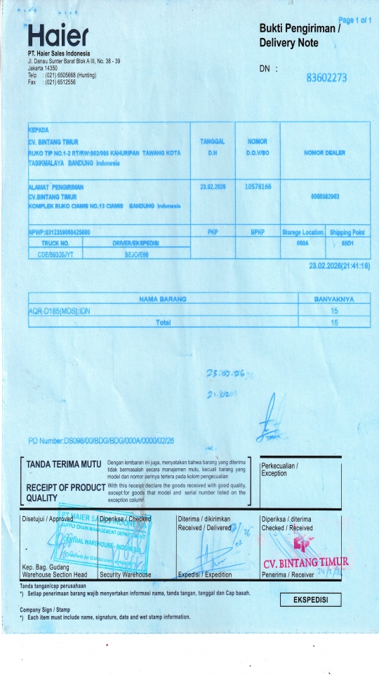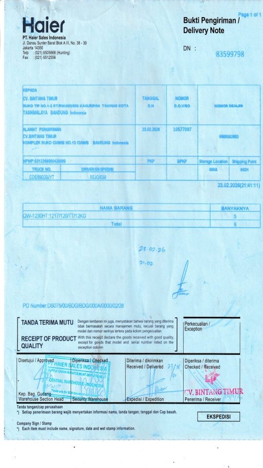 | Berangkat, Tiba, Bongkar | 2026-02-24, 2026-02-24, 2026-02-24 |