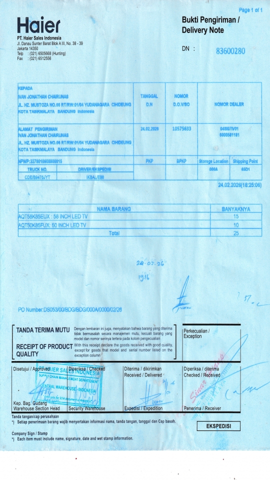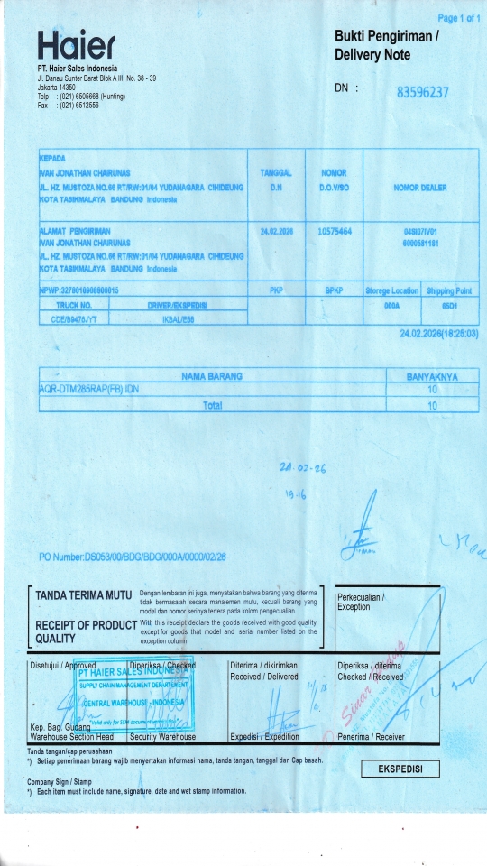 IVAN JONATHAN CHAIRUNAS JL. HZ. MUSTOZA NO.66 RT/RW:01/04 YUDANAGARA CIHIDEUNG KOTA TASIKMALAYA BANDUNG ID |