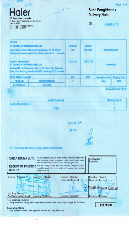 PT GLOBAL MITRATAMA CEMERLANG Gudang AIO 2 - Jl. Soekarno-Hatta No.318, Kopo, Kec. Bojongloa Kaler, Kota Bandung Jawa Barat 40233 Bandung 40233 ID |