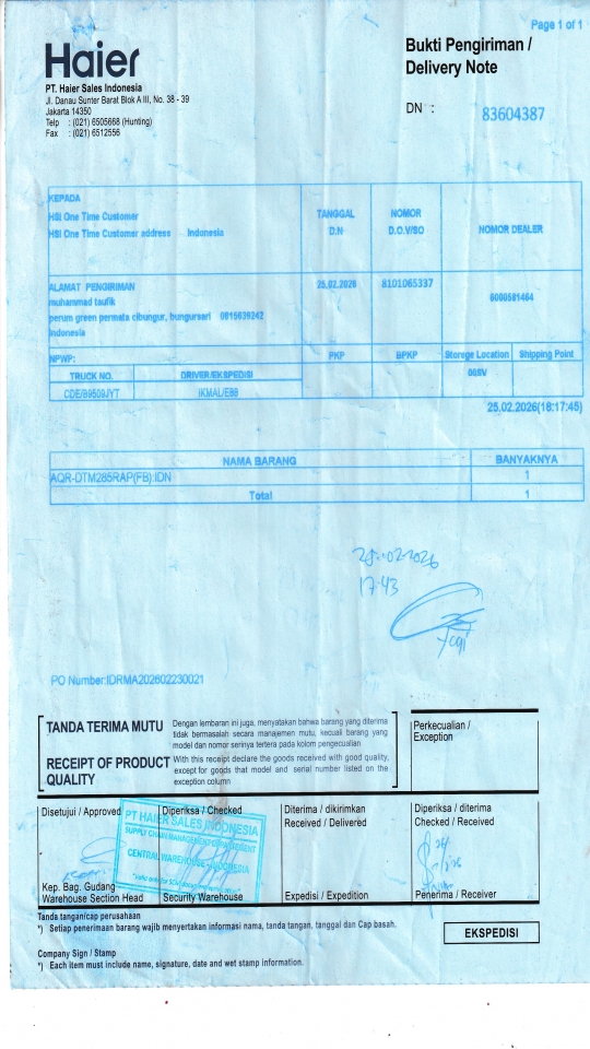 | Berangkat, Tiba, Bongkar | 2026-02-26, 2026-02-26, 2026-02-26 |