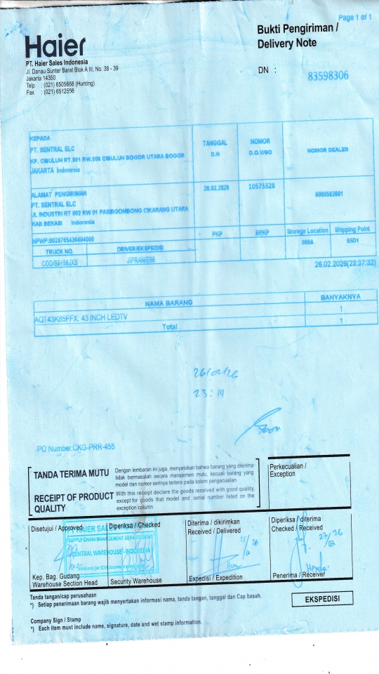 | Berangkat, Tiba, Bongkar | 2026-02-27, 2026-02-27, 2026-02-27 |