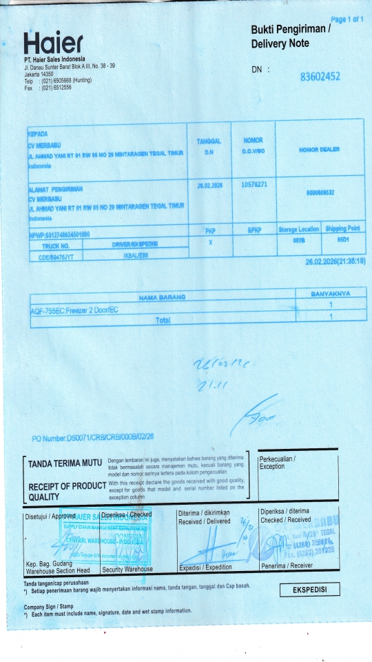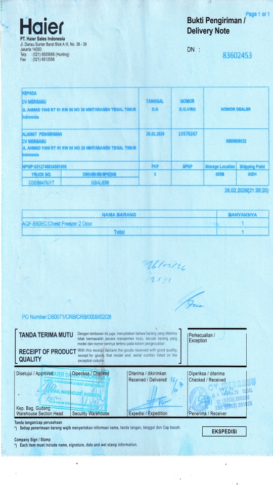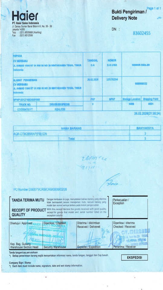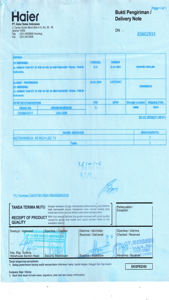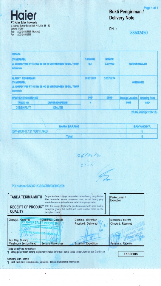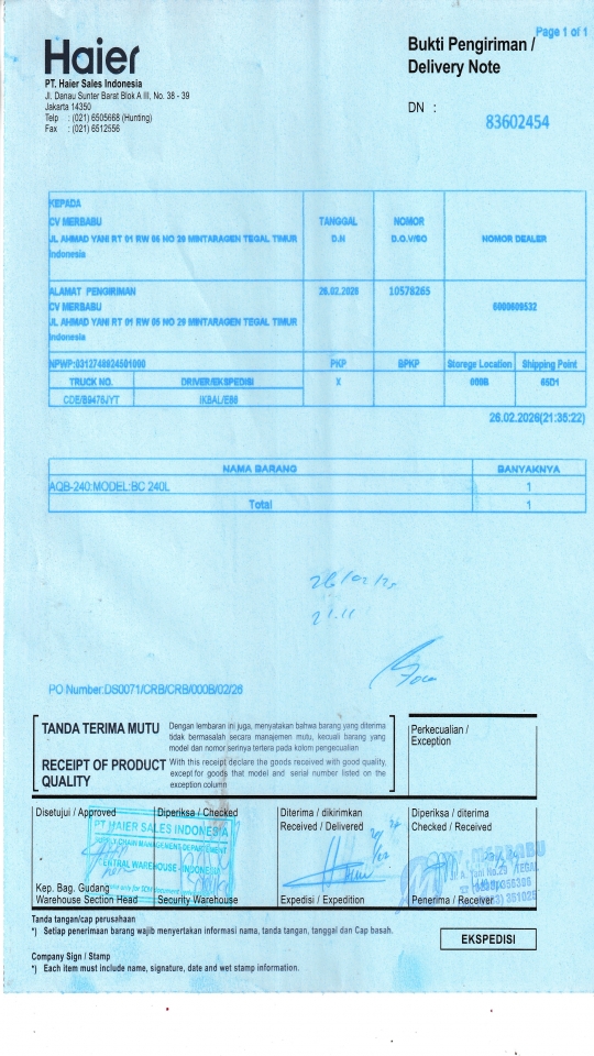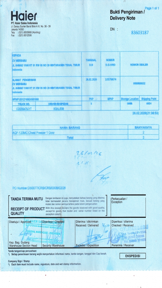 | Berangkat, Tiba, Bongkar | 2026-02-27, 2026-02-27, 2026-02-27 |