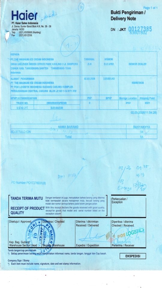 PT. Poslog (Gudang Unilever) Komplek Pergudangan Central Cakung Blok J2 No. 1-14, RT.1/RW.10, Rorotan Kec. Cilincing, Kota Jkt Utara, Daerah Khusus Ibukota Jakarta 14140 |