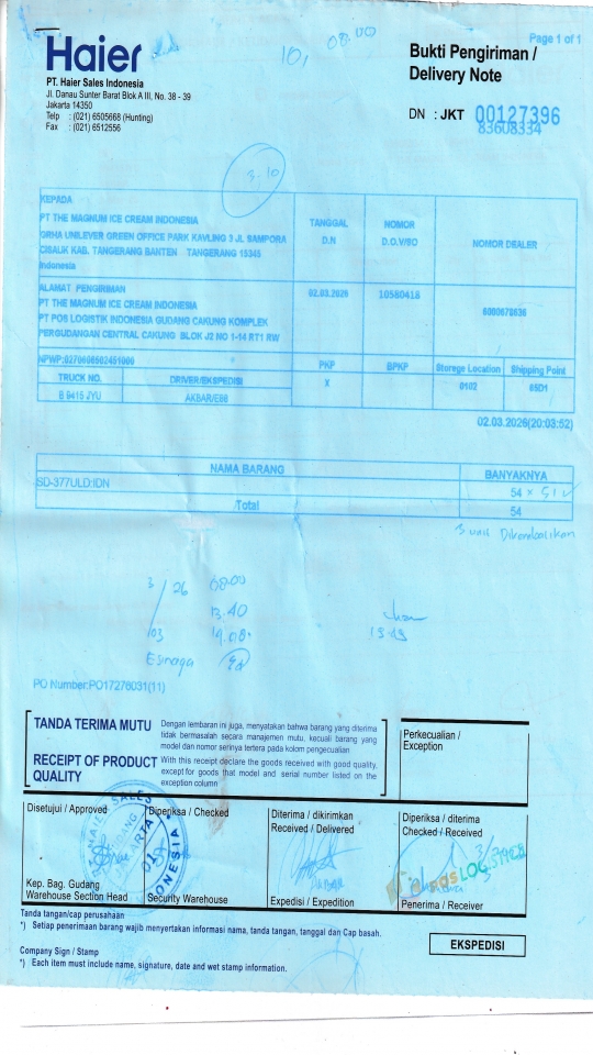 PT. Poslog (Gudang Unilever) Komplek Pergudangan Central Cakung Blok J2 No. 1-14, RT.1/RW.10, Rorotan Kec. Cilincing, Kota Jkt Utara, Daerah Khusus Ibukota Jakarta 14140 |