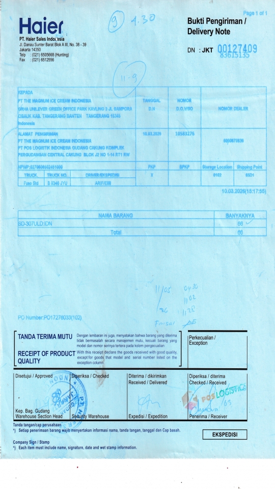 PT. Poslog (Gudang Unilever) Komplek Pergudangan Central Cakung Blok J2 No. 1-14, RT.1/RW.10, Rorotan Kec. Cilincing, Kota Jkt Utara, Daerah Khusus Ibukota Jakarta 14140 |