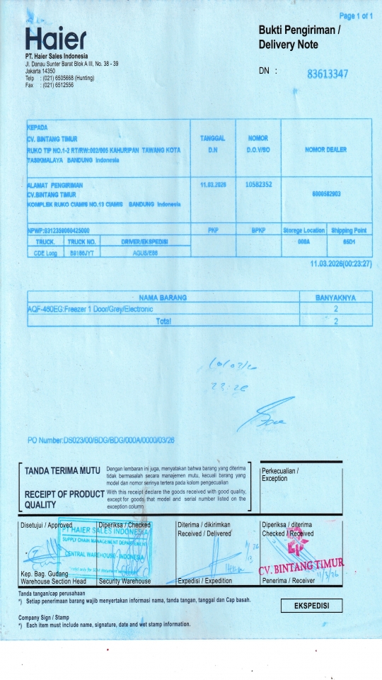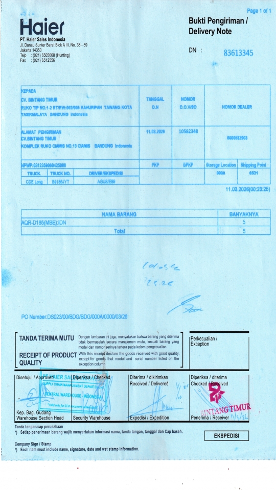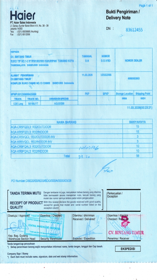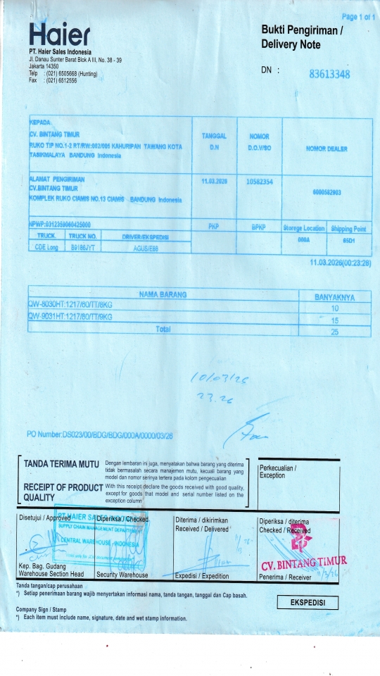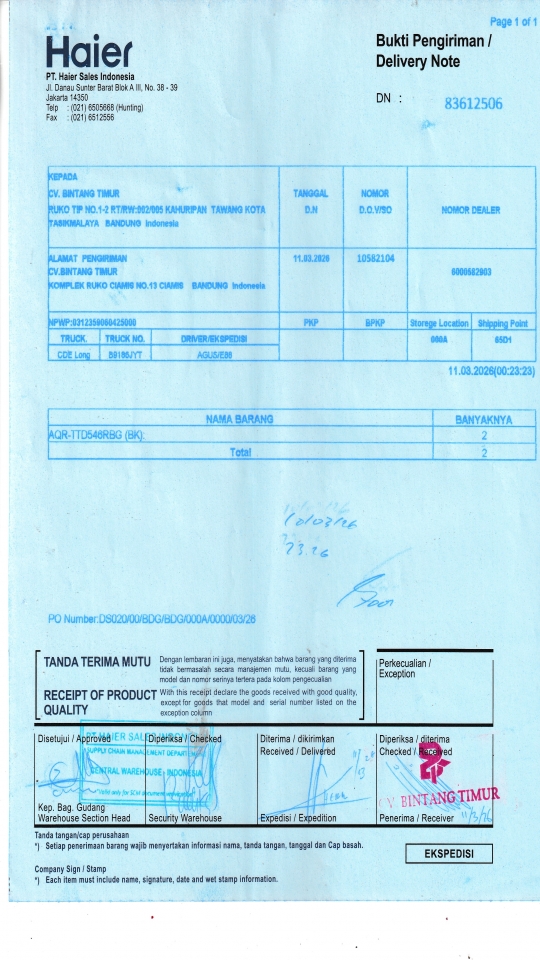 | Berangkat, Tiba, Bongkar | 2026-03-11, 2026-03-11, 2026-03-11 |