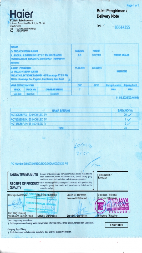 CV TRIDJAYA KEDUA SUKSES TRIDJAYA ELEKTRONIK PAGADEN - KP Rancabogo RT 019 RW 005 Kel. Sukamulya Kec. Pagaden, Kab Subang Jawa Barat Subang ID |