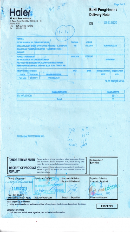 PT THE MAGNUM ICE CREAM INDONESIA PT POS LOGISTIK INDONESIA GUDANG CAKUNG KOMPLEK PERGUDANGAN CENTRAL CAKUNG BLOK J2 NO 1-14 RT1 RW 10 ROROTAN, KEC CILINCING JAKARTA UTARA 14140 ID |