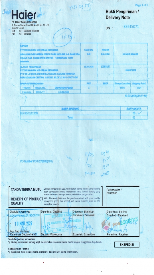 PT THE MAGNUM ICE CREAM INDONESIA PT POS LOGISTIK INDONESIA GUDANG CAKUNG KOMPLEK PERGUDANGAN CENTRAL CAKUNG BLOK J2 NO 1-14 RT1 RW 10 ROROTAN, KEC CILINCING JAKARTA UTARA 14140 ID |