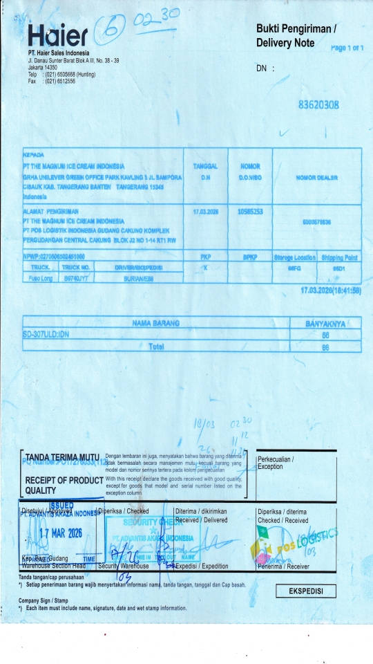 PT THE MAGNUM ICE CREAM INDONESIA PT POS LOGISTIK INDONESIA GUDANG CAKUNG KOMPLEK PERGUDANGAN CENTRAL CAKUNG BLOK J2 NO 1-14 RT1 RW 10 ROROTAN, KEC CILINCING JAKARTA UTARA 14140 ID |
