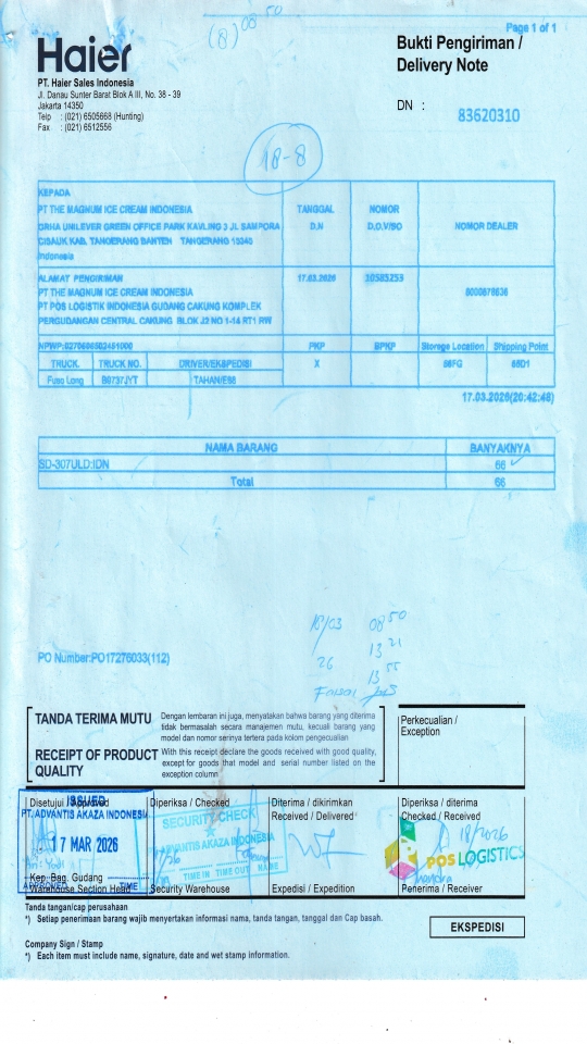 PT THE MAGNUM ICE CREAM INDONESIA PT POS LOGISTIK INDONESIA GUDANG CAKUNG KOMPLEK PERGUDANGAN CENTRAL CAKUNG BLOK J2 NO 1-14 RT1 RW 10 ROROTAN, KEC CILINCING JAKARTA UTARA 14140 ID |