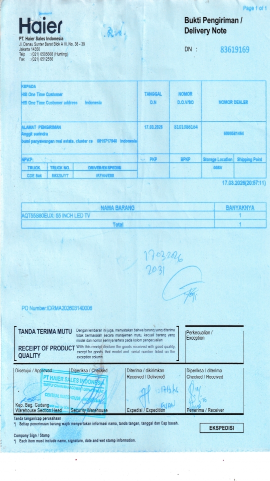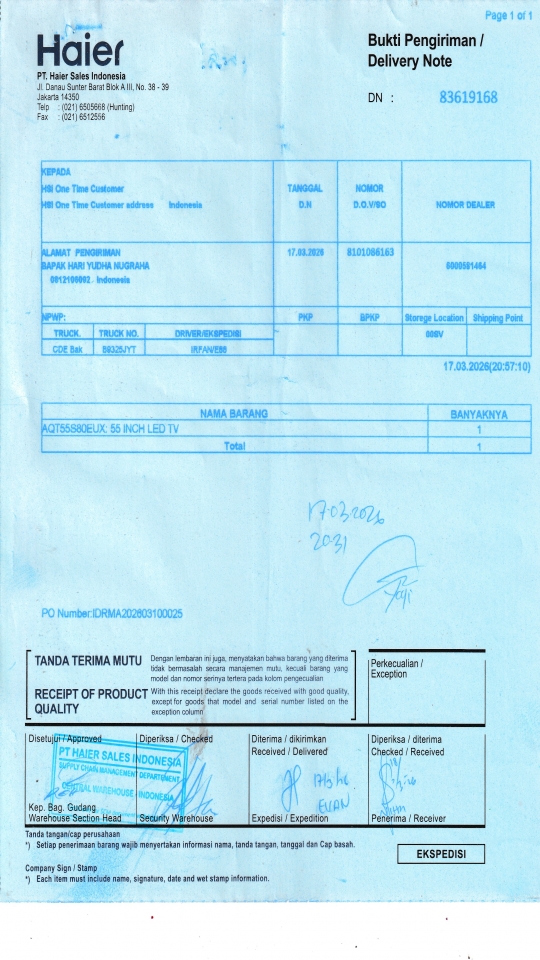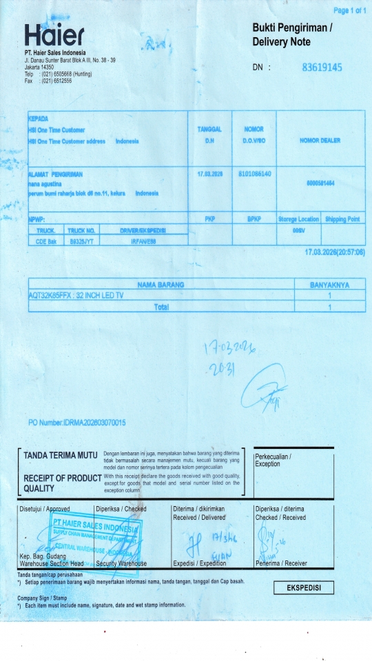 | Customer | PT. HAIER SALES INDONESIA |