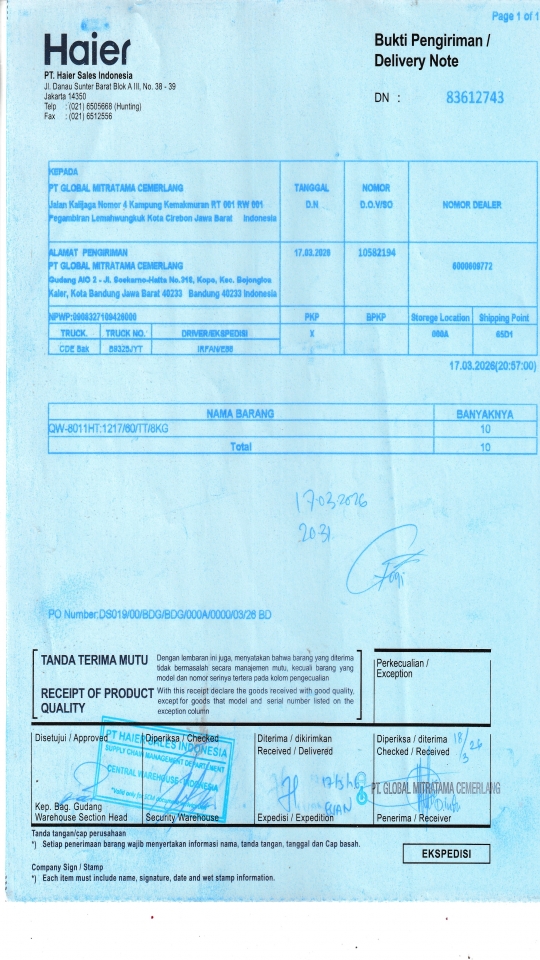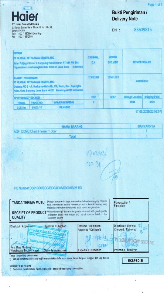 PT GLOBAL MITRATAMA CEMERLANG Gudang AIO 2 - Jl. Soekarno-Hatta No.318, Kopo, Kec. Bojongloa Kaler, Kota Bandung Jawa Barat 40233 Bandung 40233 ID |