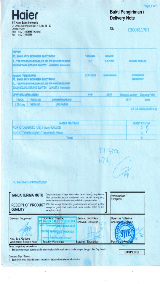 PT. SINAR JAYA INDONESIA ELECTRONIC JL. TERATE-BOJONEGARA RT.000 RW.000 KERTASANA BOJONEGARA SERANG BANTEN JAKARTA ID |