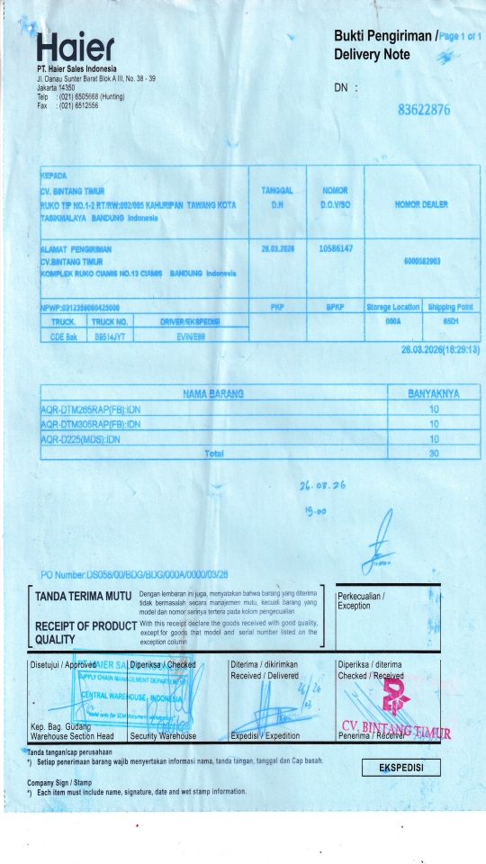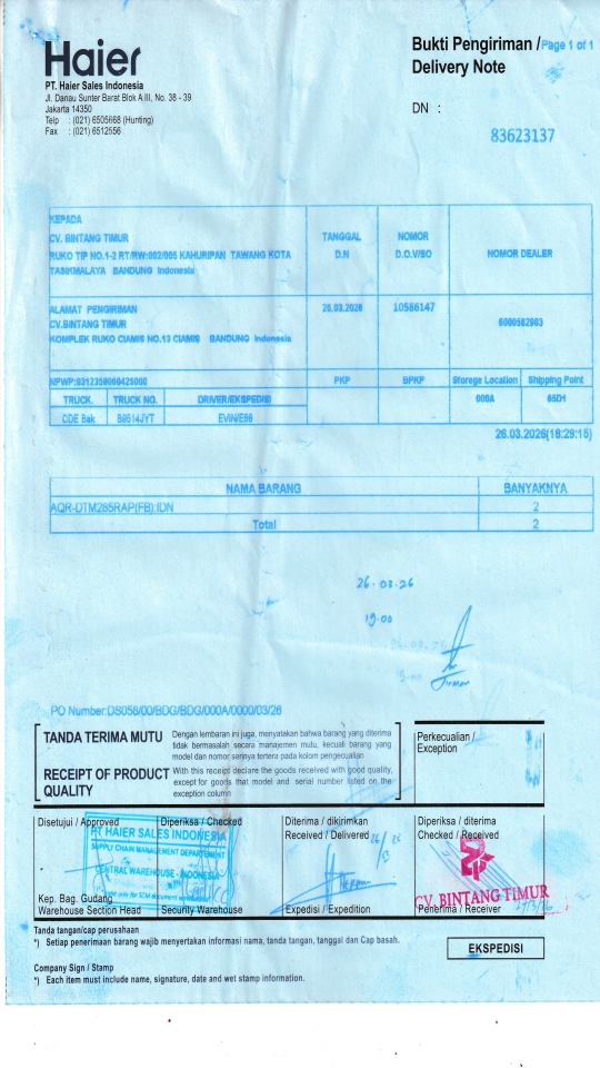 | Customer | PT. HAIER SALES INDONESIA |