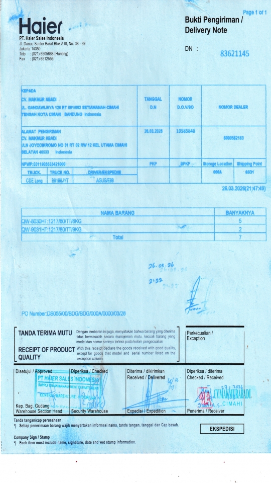 | No.Polisi | B 9186 JYT | CDE 4 |