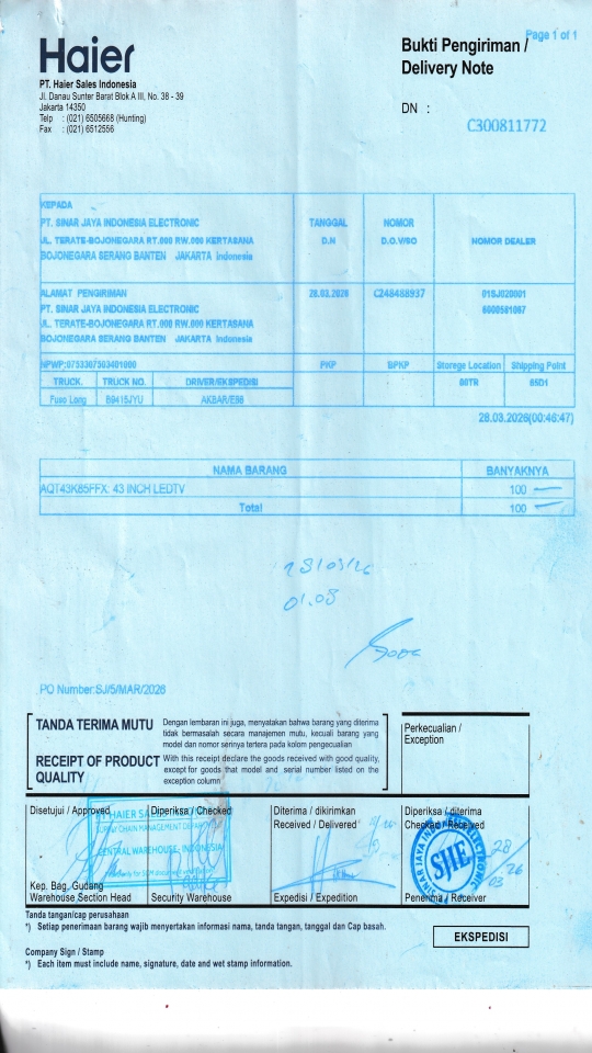 PT. SINAR JAYA INDONESIA ELECTRONIC JL. TERATE-BOJONEGARA RT.000 RW.000 KERTASANA BOJONEGARA SERANG BANTEN JAKARTA ID |