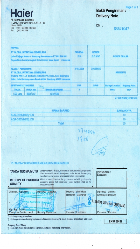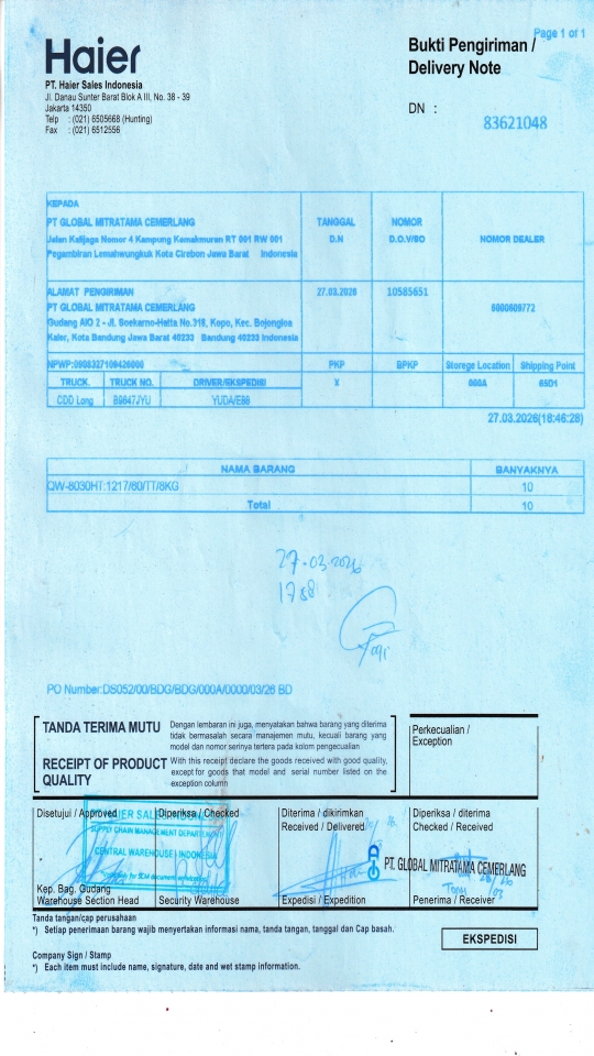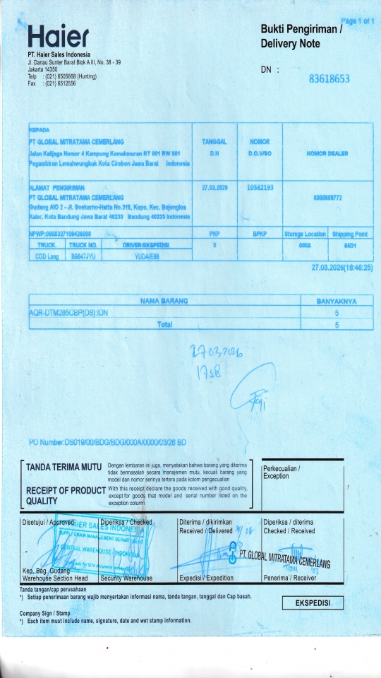 PT GLOBAL MITRATAMA CEMERLANG Gudang AIO 2 - Jl. Soekarno-Hatta No.318, Kopo, Kec. Bojongloa Kaler, Kota Bandung Jawa Barat 40233 Bandung 40233 ID |