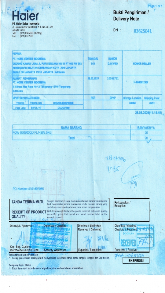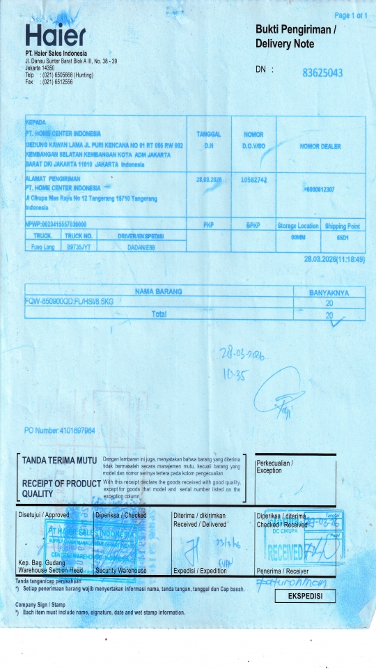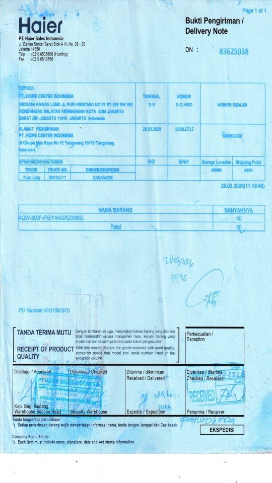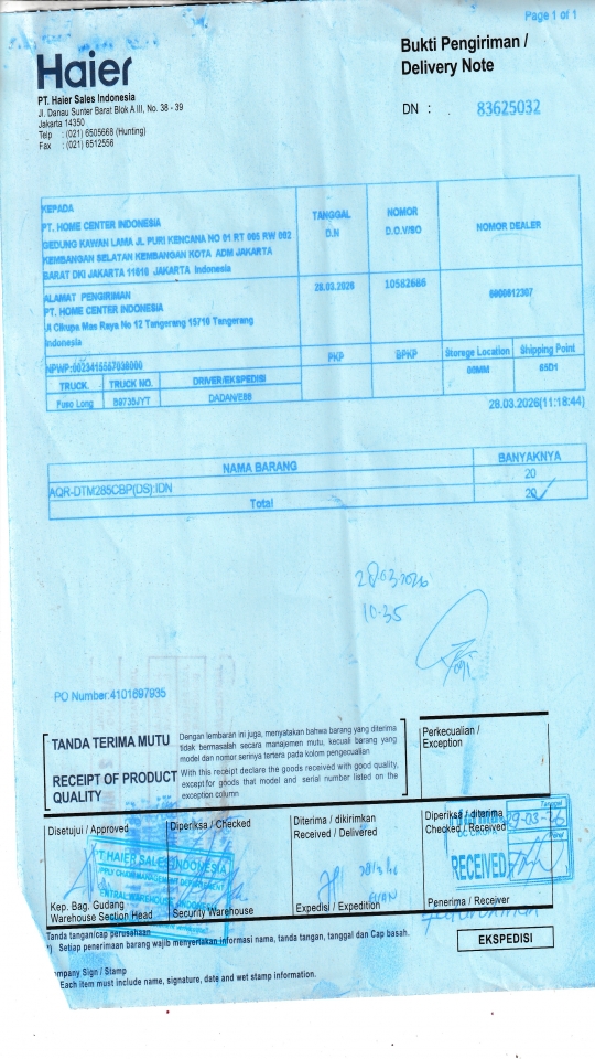 | Customer | PT. HAIER SALES INDONESIA |