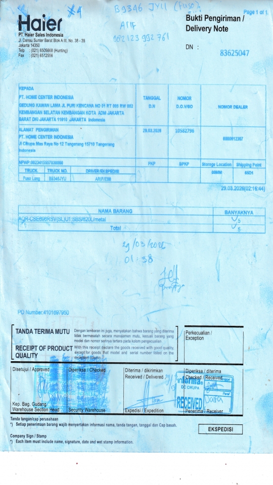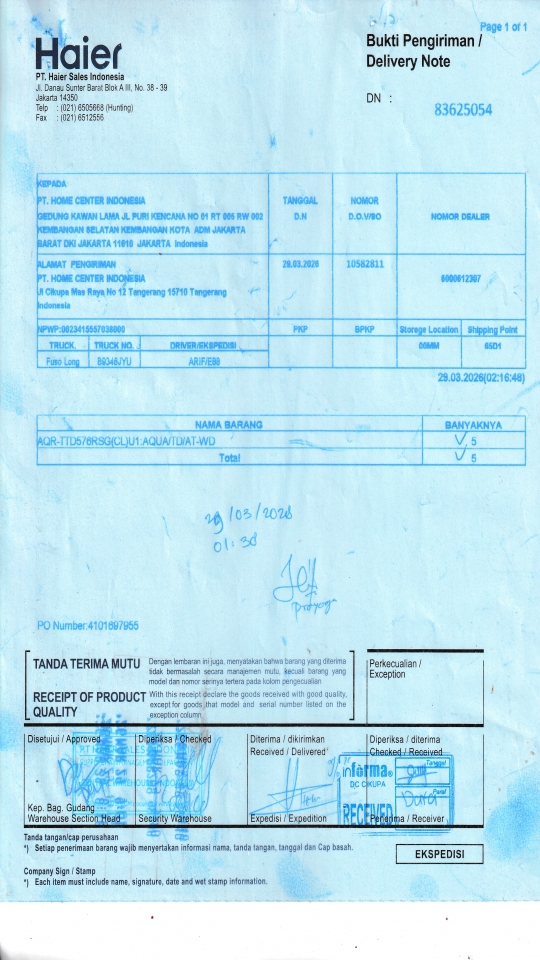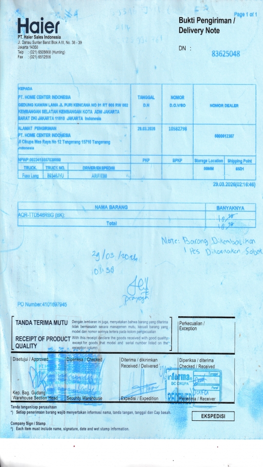 | Customer | PT. HAIER SALES INDONESIA |
