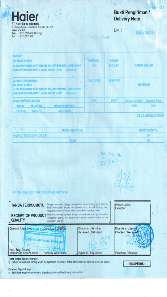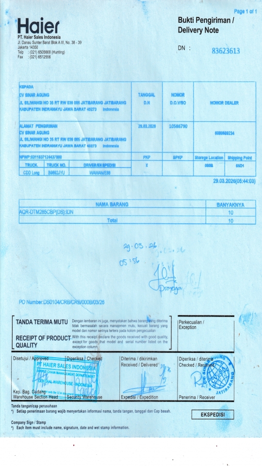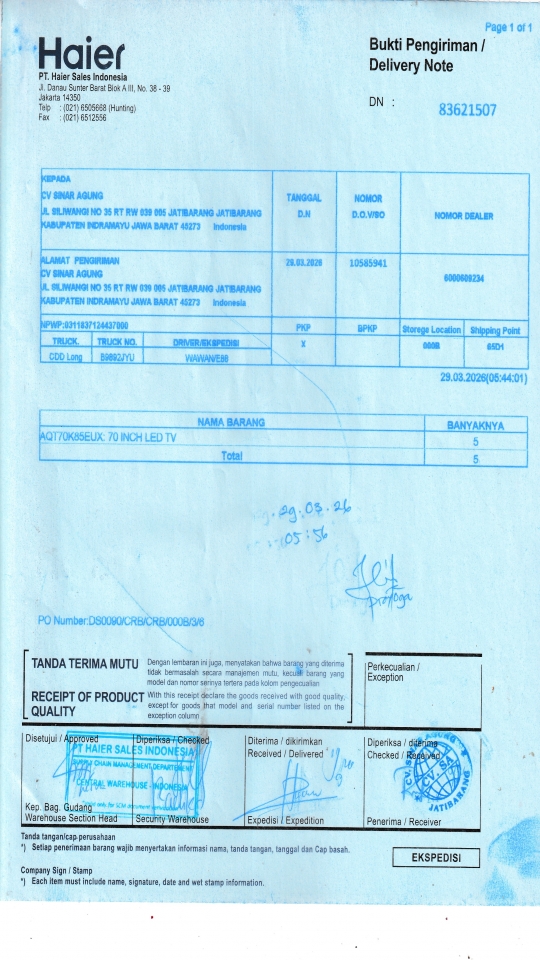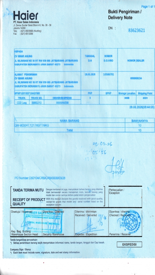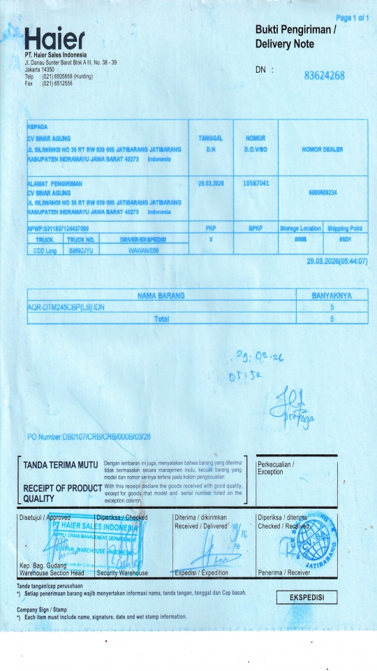| Customer | PT. HAIER SALES INDONESIA |