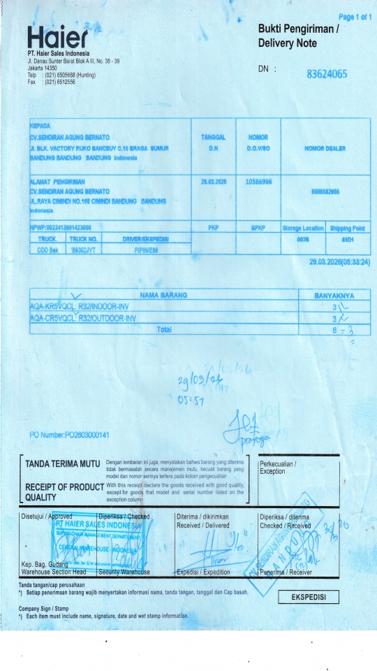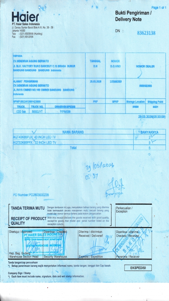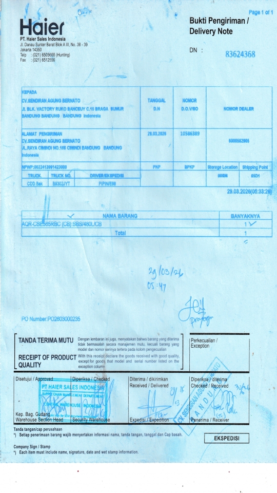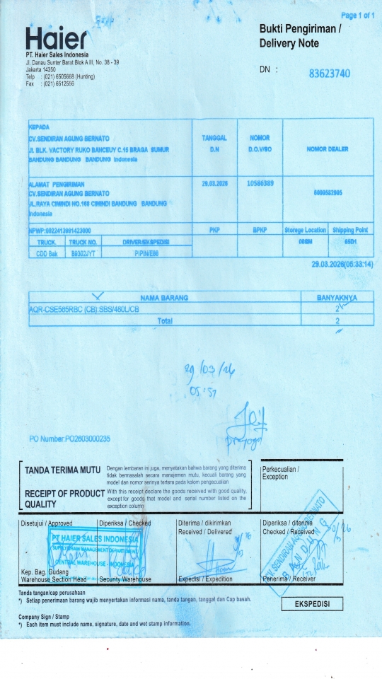 | Customer | PT. HAIER SALES INDONESIA |